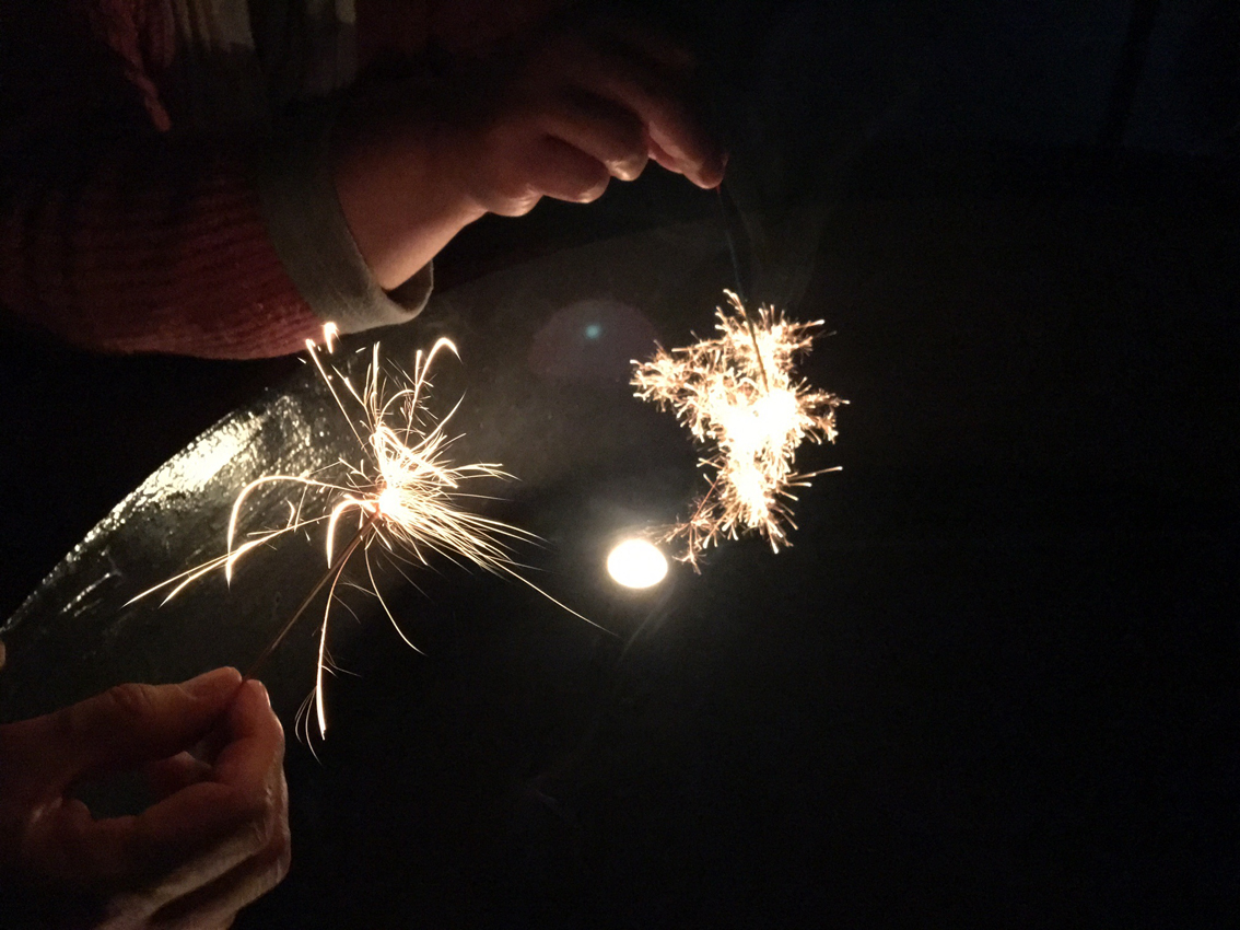 稲の収穫後の茎の芯の部分を持ち手に使う。※花火がついている間、ななめ45度上向きに持つ。風を当てた方が更にキレイに火花が広がる。
